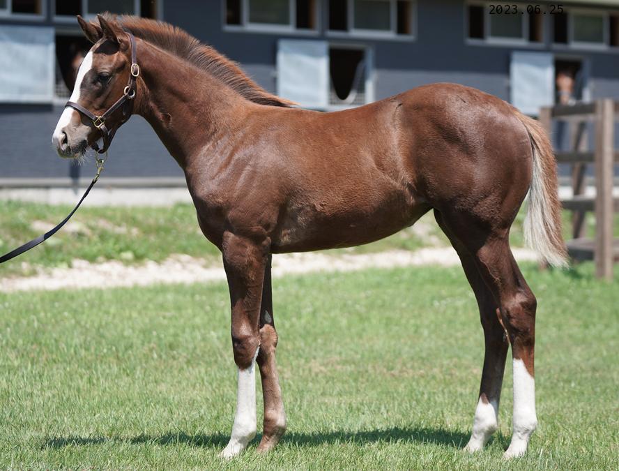 父サンダースノーは仏2歳牡馬チャンピオン&首3歳牡馬チャンピオン&首古牡馬チャンピオンという3度のチャンピオン称号を得た世界的スーパーホースで、その初年度産駒は馬体・動きが評判を呼びセールでも高評価、2023年度いよいよデビューを迎えます。