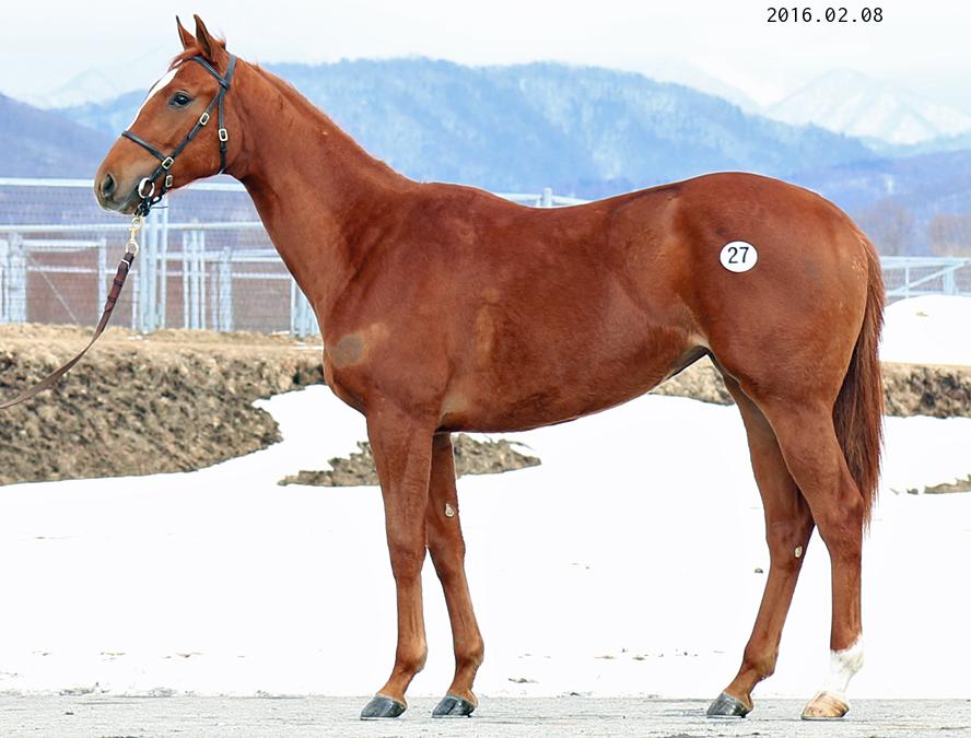 父はベルモントSなどGⅠ3勝の米3歳牡馬チャンピオン、期待が高まる新種牡馬。祖母のオークミドⅡは英・愛オークスともに3着。本馬は伸びがありトップラインが美しい。人を信頼しており扱いやすく、調教ではストライドの大きい走りをみせている。静内農業高校生産の注目馬。