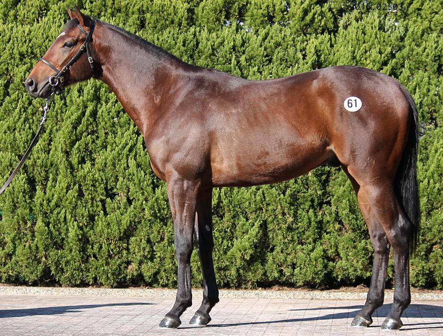 父は米3歳牡馬チャンピオンの新種牡馬、産駒のバードアトザワイアーは米重賞を勝利。おじのマイネルハーティーは、NZTを含む3勝。本馬は父譲りの伸びのあるトップラインを持つ。気性的に幼い面をみせていたが落ち着きが出てきた。調教ではストライドの大きなキャンターをみせている。